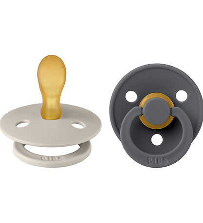 Schöne BIBS Schnuller im 2er-Pack in Matt Staubbeige und Dunkelgrau.