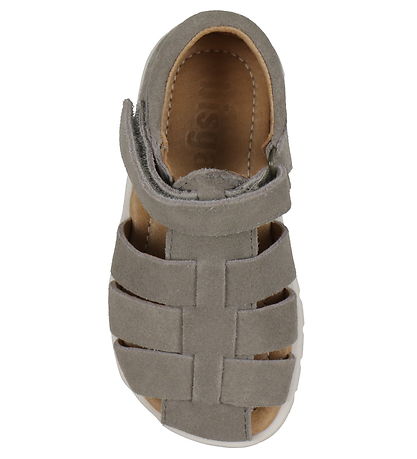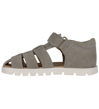 Schicke Bisgaard Sandalen aus grauem Wildleder. Die Sandalen haben schöne, geflochtene Riemen über dem Fuß.