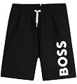 Schöne BOSS Badeshorts in Blau und An der linken Hosenbein ist"BOSS" in Weiß aufgedruckt.