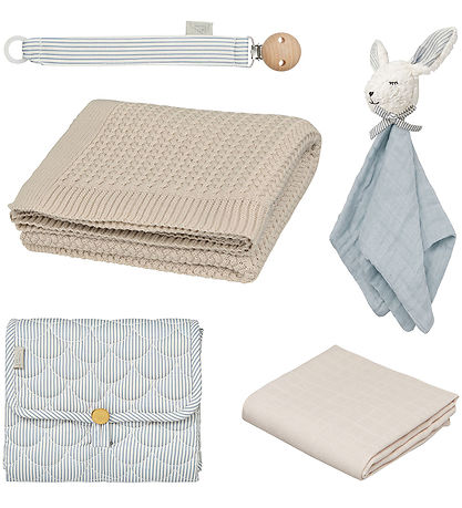 Schön Geschenkbox von Cam Cam Copenhagen in einem wunderschönen Farbthema mit blauen und weißen Streifen und einer beige Farbe. Die Geschenkbox enthält: