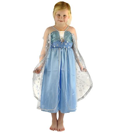 Den Goda Fen Die Eiskönigin Kostüm ist ein Kleid mit eckigem Ausschnitt und langen Ärmeln. Ein schmaler Gummirand um die Taille verleiht dem Kleid einen taillierten Schnitt sowie feine Wadendetails im Rock, der in glattgewebte Polyester-Qualität ist.