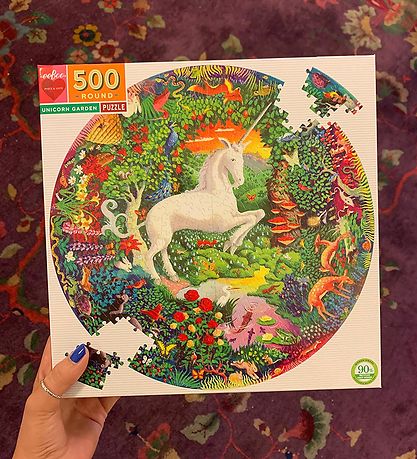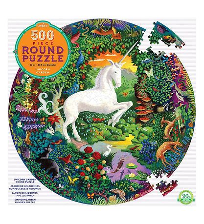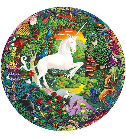 Das Eeboo Puzzlespiel besteht aus 500 Teile und das Puzzlespiel hat eine Rund Form. Das Motiv besteht aus einem weißen, großen Einhorn in der Mitte des Puzzlespiel, umgeben von süße Tieren, Blumen und Pflanzen.