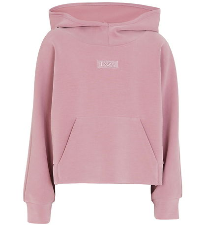 Eleganter Emporio Armani Kapuzenpullover in einem schönen mattrosa. Der Kapuzenpullover hat ein gestricktem Logo auf der Vorderseite, das das stilvolle Design unterstreicht. Er ist mit einer geräumigen Kängurutasche ausgestattet. Der Kapuzenpullover hat eine lockere Passform, die durch Gerippte Kanten an den Handgelenken gesichert wird.