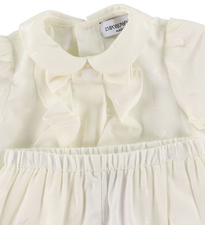 Süßes Emporio Armani Kleid in Weiß mit dezenten Logos und den in den Stoff gewebt Initialen"EA". Das Kleid ist in einer leichten, dicht gewebten Qualität gefertigt.