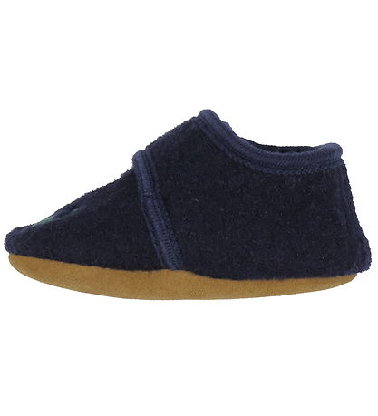 En Fant Hausschuhe lässt sich mit einem breiten Klettverschluss über dem Fuß und sind so schnell an- und ausgezogen. Die Hausschuhe haben eine Außensohle aus Wildleder, die für einen guten Halt sorgt.