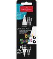 Die Filzstifte von Faber-Castell haben eine Rund Form. Die Filzstifte sind beidseitig farbig, wobei ein Ende eine schmale Spitz (Fineliner (0,6 mm)) und das andere eine dicke Spitz (flexibler Pinsel) hat, wodurch viele verschiedene, schöne Bilder möglich sind. Die Filzstifte haben eine Tinte auf Alkoholbasis, die schnell trocknet und eine unglaubliche Detailgenauigkeit ermöglicht.