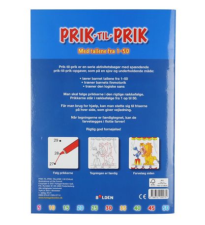 Das Forlaget Bolden besteht aus 24 Seiten mit schwarz-weißen Illustrationen mit kleinen Punkte. Dot to Dot ist eine Reihe von Aktivitätsbüchern mit spannenden Punkt-zu-Punkt-Aufgaben, die auf lustige und unterhaltsame Weise: