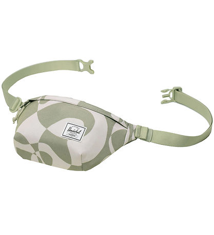 Smart Herschel Gürteltasche mit abstraktem Muster in Hellgrün und Weiß. Es hat eine praktische Größe und einen klassischen Herschel -Logo-Patch auf der Vorderseite, der für einen modernen Touch sorgt.