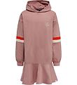 Das Hummel -Hoodie-Kleid hat lange Ärmel, und an allen Öffnungen befinden sich breite Rippkanten. Das Hoodie-Kleid hat eine feste Kapuze und einen schön Rock mit Falten am unteren Rand. Es ist in einer weichen und dehnbar Baumwollqualität hergestellt.
