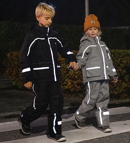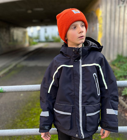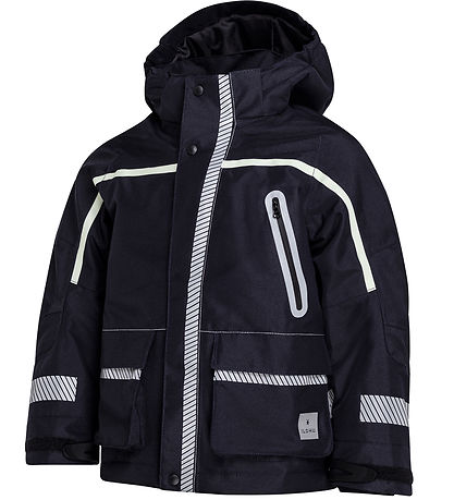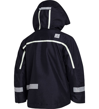 Ansprechender Ildhu Winterjacke in Marineblau mit vielen Reflektoren für gute Sichtbarkeit im Verkehr.