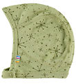 Schön Joha Babymütze in Blass Rosa. Der Joha Babymütze hat ein Muster mit kleinen, Braun Sternen, die über das gesamte Design verteilt sind. Der Babymütze hat eine Rund Form mit einem schmalen gerippter Rand entlang der Öffnung. An der Unterseite befindet sich ein praktischer Druckknopfverschluss, der für einen guten Sitz um den Kopf des Kindes sorgt.