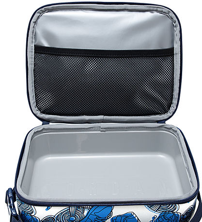 Die Jordan Brotdose lässt sich Top mit einem dreiseitigen Reißverschluss öffnen und verfügt innen über ein großes Rum aus hartem, grauem Kunststoff. Im Deckel befindet sich ein Mesh mit Gummirand. Auf der Vorderseite befindet sich ein Reißverschlussfach. Die Brotdose wird an einem Tragegriff mit Gummigriff getragen. Der Tragegriff lässt sich mit einem Klickverschluss öffnen und so z.b. an einer Tasche Fast.