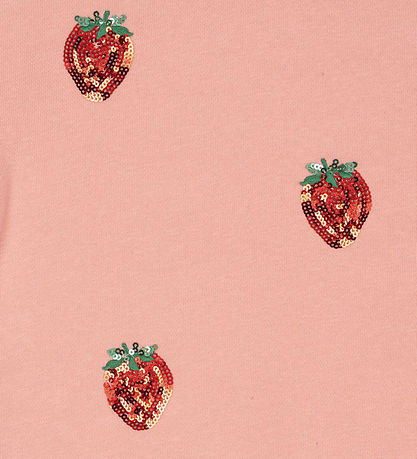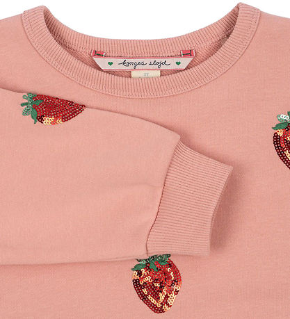 Bezauberndes Sweatshirt von Konges Sløjd in einem warmen Rosaton mit glitzerndem Erdbeerdruck. Das Sweatshirt von Konges Sløjd hat lange Ärmel und einen Rund, was Hals einen schlichten und stilvollen Look verleiht.