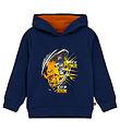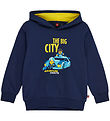 Ansprechender LEGO® City Kapuzenpullover in Navy, und auf der Vorderseite befindet sich ein großer Print mit einem Polizeiauto in Blautönen und zwei Beamten.
