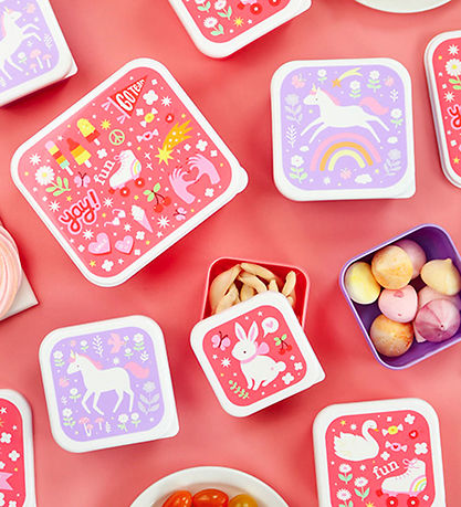 Schön A Little Lovely Company Brotdosen-Set bestehend aus 4 Brotdosen in Dunkelrosa mit lustigen Print in vielen Farben.