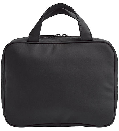 Schön Markberg Kulturbeutel in Schwarz mit klein Gummilogo auf der Vorderseite.