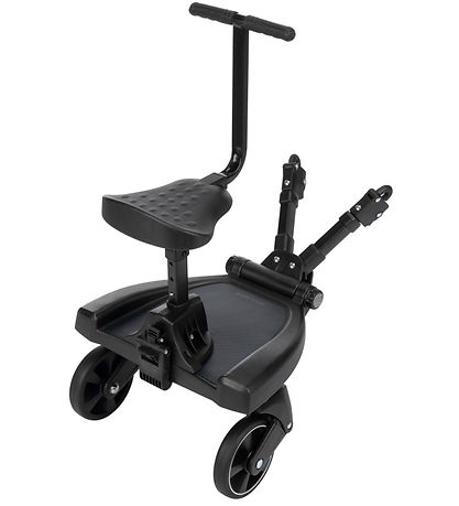Damit die Kleinen auch mitfahren können, lässt sich das Hop-On-Board am Kinderwagen oder Buggys befestigen. Es besteht die Möglichkeit zum Aufstehen, aber auch zum Hinsetzen durch den abnehmbaren Sitz mit Haltegriffen. Zudem lässt sich das Hop-On-Board bei Nichtgebrauch mit dem mitgelieferten Aufhängegurt nach oben klappen.