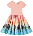 Einzigartiges Molo Kleid mit auffälligem Panda- Print in Schwarz und Weiß. Das Molo Kleid hat kurze Ärmel mit eleganten, breiten Rüschen, die eine leichte und luftige Struktur erzeugen. Der Rock ist weit.