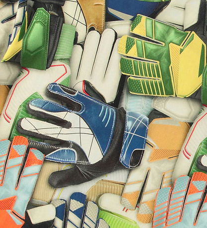 Schön Molo T-Shirt mit auffälligem Allover-Print aus bunten Torwarthandschuhen in verschiedenen Nuancen wie Grün, Blau, Gelb und Orange. Das T-Shirt hat einen klassischen Rund und kurze Ärmel für ein zeitloses Design. Das Molo T-Shirt ist aus weicher und bequemer Qualität gefertigt, die Ihrer Garderobe einen modernen Touch verleiht.
