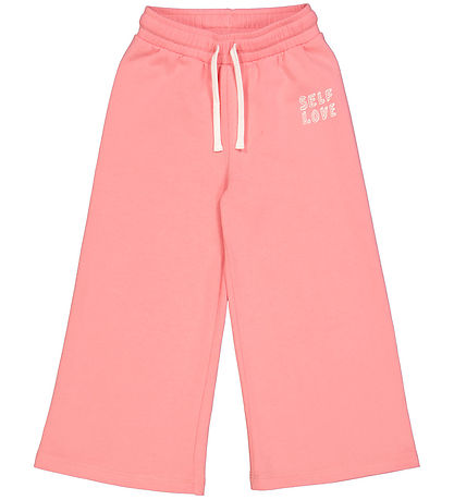 Bunte Müsli Jogginghosen in einem hellen pink mit dem gestricktem Text"SELF LOVE" auf der Vorderseite. Diese Jogginghosen bietet eine entspannte Passform, perfekt zum Spielen und Entspannen.