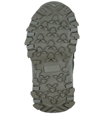 Stylische Viking Stiefel in Armygrün mit silbernem Logo-Print an der Außenseite der Ferse.
