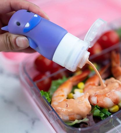 Yumbox-Dressingflaschen bestehen aus Silikon und haben am Boden einen Deckel, der abgeschraubt werden kann. Die Flaschen können z.b. verwendet werden. Ketchup und dergleichen.