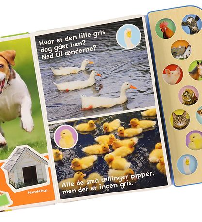 Informatives Alvilda -Buch mit dem Titel "Min Bondegård Med Lyd". Drücken Sie die Knöpfe und Leinen die Bauernhoftiere. Mit 10 süße Sounds! "Ky-ke-li-kyyy", kräht der Hahn. Es ist ein neuer Morgen auf der Bauernhof und alle Tiere wachen auf. Aber hey, ein Schwein fehlt! Begib dich in den wunderschönen und farbenfrohen Bildern des Buches auf ein Abenteuer und hilf dabei, das klein Schweinchen zu finden.