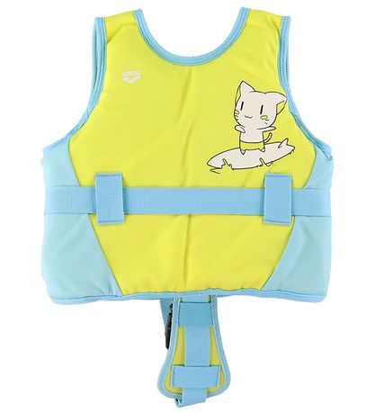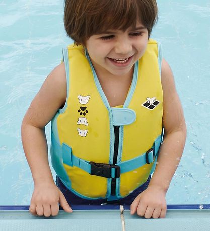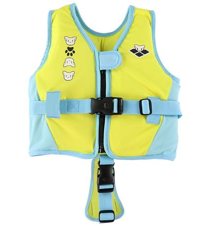Die Schwimmweste Arena Friends hat zwei Schwimmelemente vorne und zwei hinten. Es schließt vorne mit einem starken, durchgehenden Reißverschluss und einem Klettverschluss oben, sowie mit einer starken Schnalle an der Brust und zwischen den Beinen. Der Reißverschluss hat eine innere Spalte, die die Haut des Kindes vor dem Reißverschluss schützt. Die Badeweste ist leicht und bietet gute Bewegungsfreiheit.
