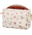 Entzückende Make-up- Geldbeutel von Cam Cam Copenhagen in Beige mit einem Allover-Print aus feinen, kleinen Blumen in Nuancen. Innen ist es einfarbig blau.
