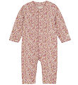 - Der Strampler ist in Dunkelrosa Velours, mit einem Herz aus Blumen unter dem Hals.