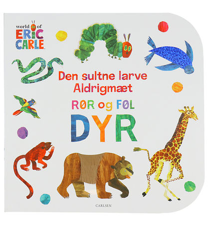 Das im Forlaget Carlsen Buch enthält mehrere Pfeifen- und Fohlenelemente. Mit der Raupe Aldrigmät geht das Kind auf Entdeckungstour durch den Dschungel, den Bauernhof und das Meer.