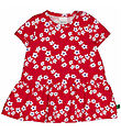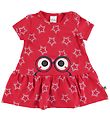 Das Kleid von Freds World hat kurze Ärmel mit Rüschen und einen Rund mit schmaler Hals, der mit Druckknöpfe an der linken Schulter geöffnet wird. Oberhalb der Brust hat es eine schmale Naht, die feine Falten im Rock erzeugt. Das Kleid ist in einer dehnbar Baumwollqualität und hat eine gute Weite.