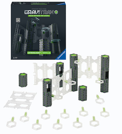 Das GraviTrax -Erweiterungsset kann zusammen mit dem Vertical Pro Starterset verwendet werden und ermöglicht den vertikalen Bau und den Bau von Ballbahnen mit viel Höhe. Mit den Elementen des Sets, zu denen einzigartige Komponenten gehören, können Sie Wände, Säulen und Balkone bauen, die zu dreidimensionalen Strukturen zusammengefügt werden können.