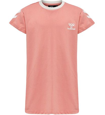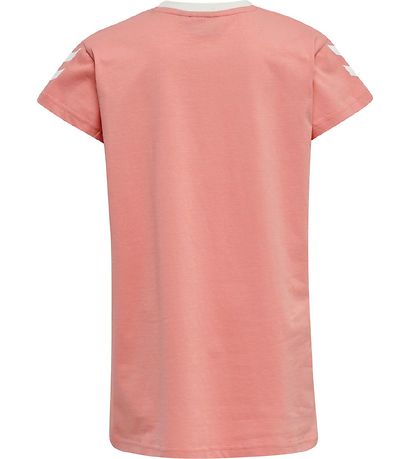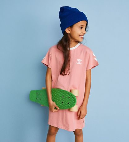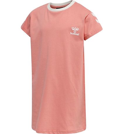 Cooles Hummel Kleid in Pink mit weißem geripptem Rand am Ausschnitt und klein, Weiß Logo-Print auf der linken Brust. An den Ärmeln sind die klassischen Hummel Winkel in Weiß.