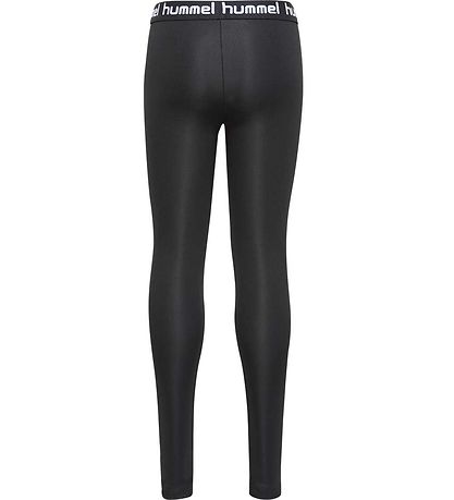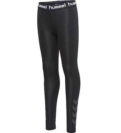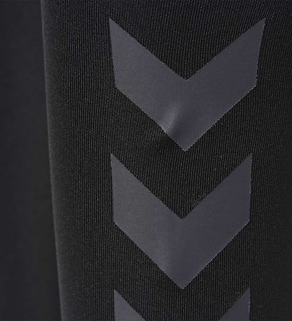 Schöne Hummel Leggings in Schwarz mit den klassischen Hummel Winkeln in Schwarz an den Beinen.