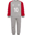Schön Hummel - Sweatset bestehend aus einem Sweatshirt und einer Jogginghosen, Teile in Pink. Das Sweatshirt hat ein Logo und den gestricktem auf der linken Brust, und dasselbe ist auf dem linken Oberschenkel der Jogginghose zu finden.