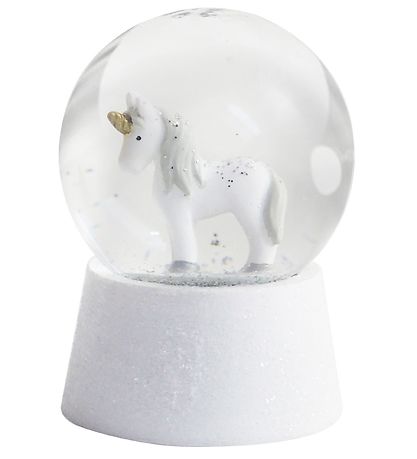Niedlicher Kids by Friis Schneekugel mit weißer Glimmerbasis. Im Inneren befindet sich ein schön weißes Einhorn.