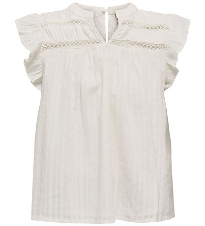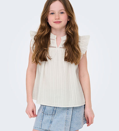 Schönes Top von Kids Only in Weiß mit schönen Rüschen an den Ärmeln. Das Top hat ein zartes Muster, das dem schlichten Design etwas Flair verleiht. Perfekt für einen entspannten Tag.