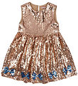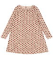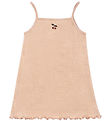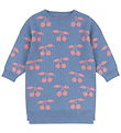 Elegantes Konges Sløjd Kleid in einem sanften, hellblauen stickat. Das Kleid ist mit einem bezaubernden Kirschmuster in Rosa verziert. Das Konges Sløjd Kleid hat gerippter Rand am Ausschnitt und an den Ärmeln.
