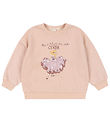Wunderschönes Konges Sløjd Sweatshirt in einem hellen Beigeton mit großem Print eines blauen Hundes auf einem skateboard auf der Vorderseite. Das Konges Sløjd Sweatshirt hat einen Rund Ausschnitt und lange Ärmel mit gerippter Rand an allen Öffnungen. Die Innenseite besteht aus weicher, gebürsteter Baumwolle.