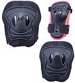 Das Konges Sløjd Schutzset schützt die exponierten Körperteile des Kindes, wenn es mit Rollschuhe, Tretroller, skateboard oder Laufrad unterwegs ist. Das Bein bzw. der Arm wird durch die Öffnung nach unten geführt und anschließend können die einzelnen Teile mit breiten Gummibändern mit Klettverschluss Fast werden. Damit die Bänder nicht zu Hautreizungen führen, verfügen die Knie- und Ellenbogenschützer über eine weiche Polyesterrückseite.