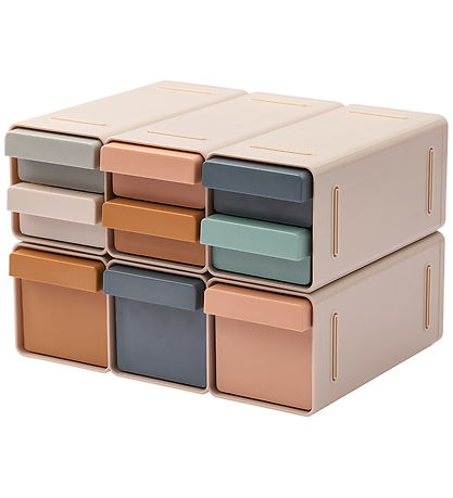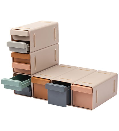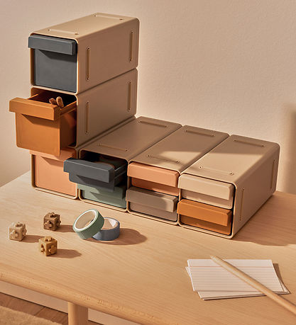 Smart Liewood Aufbewahrungssystem in Beige mit Schubladen in verschiedenen gedeckten Nuancen.