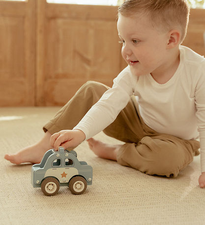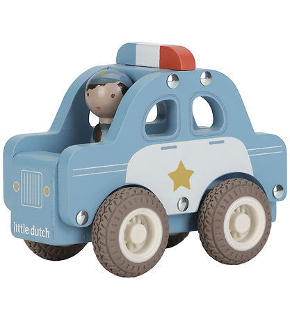 Bezauberndes Polizeiauto von Little Dutch aus blauem Holz mit weißen und roten Details und 4 Gummirädern. Das süße Polizeiauto enthält eine Schöne Holzfigur, die für zusätzlichen Spielspaß sorgt. Eine tolle Ergänzung von Little Dutch.