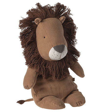 Wunderschöner Maileg Kuscheltier in Löwenform aus braunem Leinen mit großer, dunkelbrauner Mähne und feinen gestickten Details.