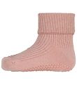 Die Melton Babysocken hat eine breiten Gummirand Rand mit guter Faltmöglichkeit. Die Socken sind in einer ansprechender Rippenstruktur. Unter dem Fuß befinden sich Punkte in einem rutschfesten Gummimaterial.