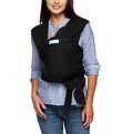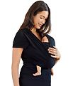 Praktische Moby -Stretchfolie in schlichtem Schwarz mit blauer Markierung auf der Vorderseite mit dem Text "Moby" in Weiß.