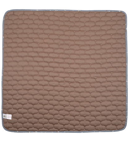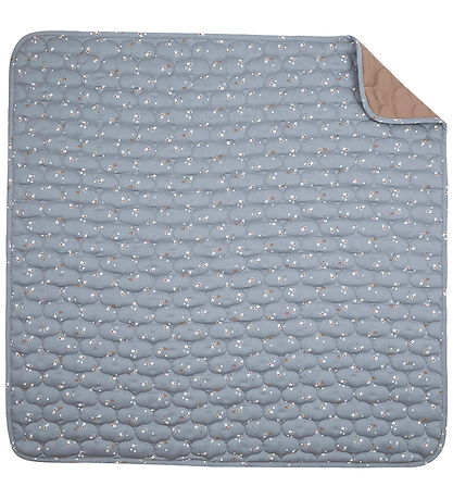 Feiner Müsli Sternen in in Mattblau und Print. Auf der anderen Seite ist der Decke einfarbig braun.
