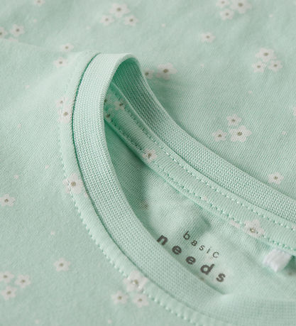 Elegantes Name It T-Shirt in einem sanften pastel. Das T-Shirt ist mit einem dezenten Allover-Print aus kleinen Blüten und Punkte in Weiß verziert und verleiht ihm einen zarten und stylischen Look.