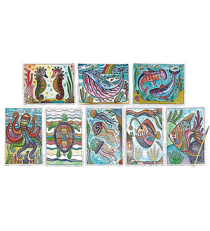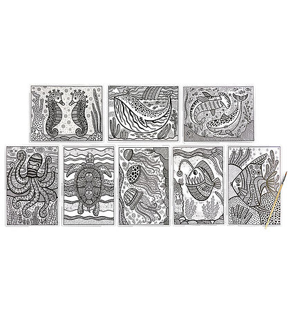 Zauberhafte Ooly Malvorlagen mit süße Motiven aus der Unterwasserwelt. Im Paket sind 8 magische Malvorlagen und ein Pinsel enthalten.