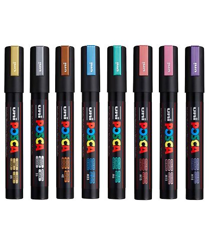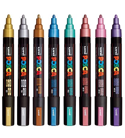 Schöne Posca Marker, die in einem Pack mit 8 verschiedenen Farben in Metallic-Farben verkauft werden: metallic Violett (M12 Metallic Violet), metallic pink (M13 Metallic Pink), metallic rot (M15 Metallic Red), metallic Grün (M6 Metallic Green), metallic Blau ( M33 Metallic Blue), Bronze (42 Bronze), Silber (26 Silber) und Gold (25 Gold).
